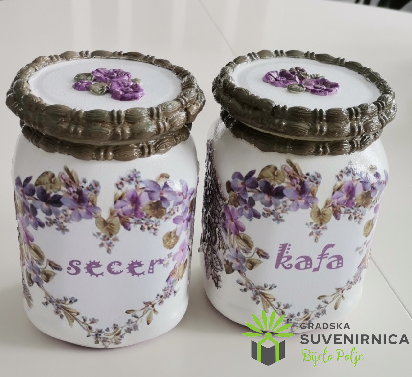 Set za kafu i šećer odrađeni dekupaž tehnikom.